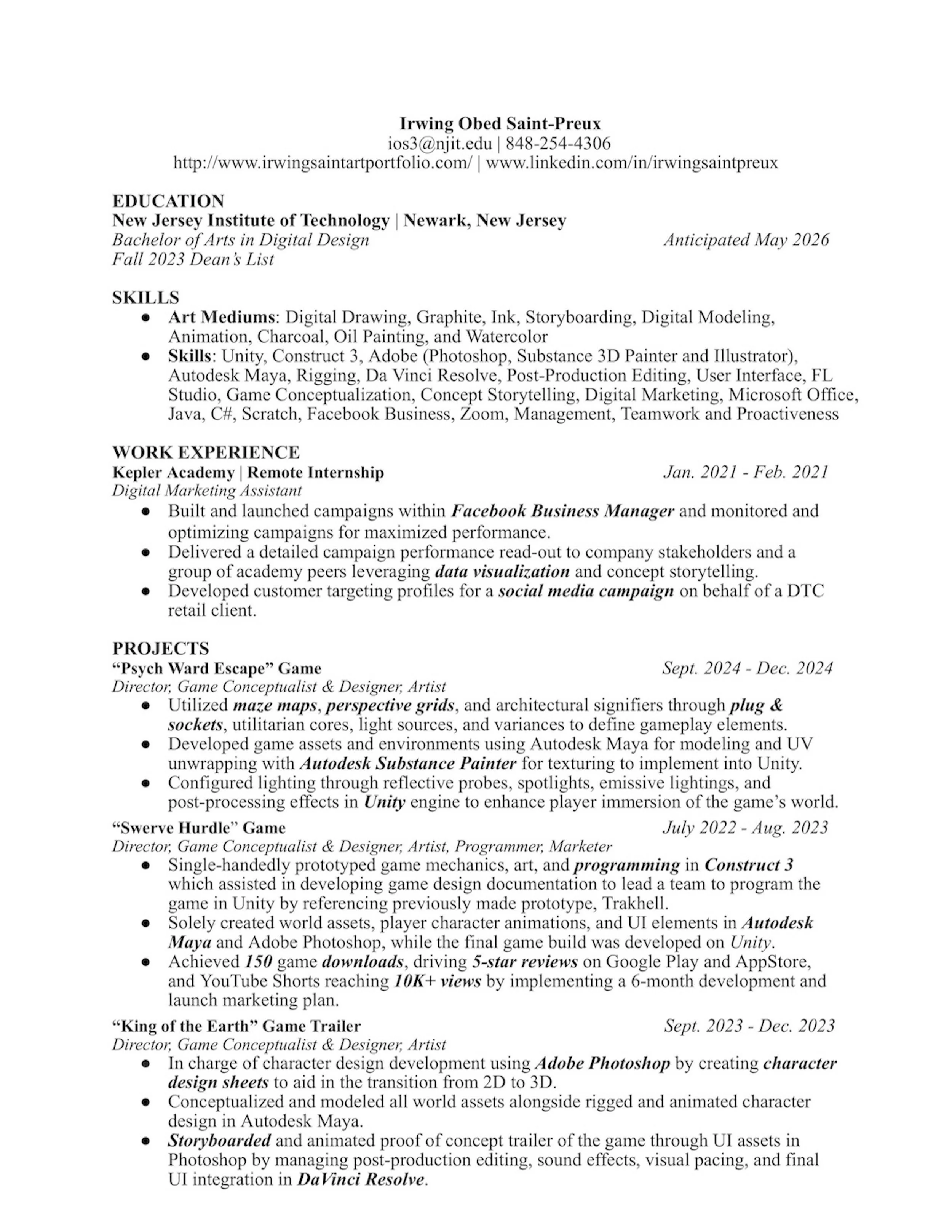 Video games have always been a part of my life, inspiring me to see art as an immersive experience and games as a unique form of thinking. I believe great games challenge the mind and push players beyond their comfort zones. My goal is to create impactful gaming experiences that blend old-school and modern art and design, pushing the boundaries of what a video game can be.
