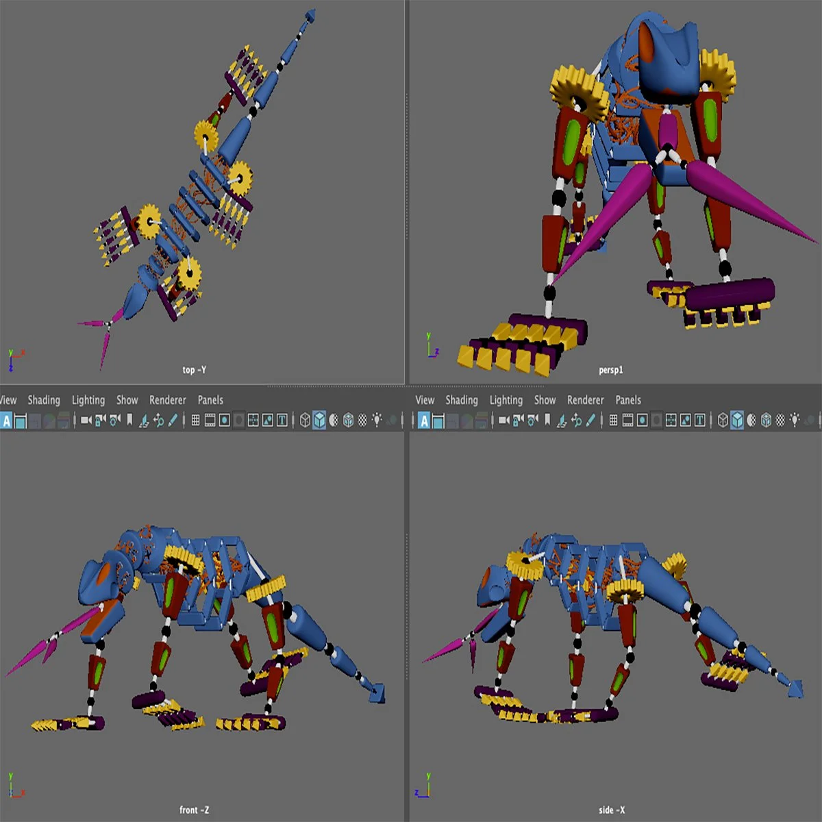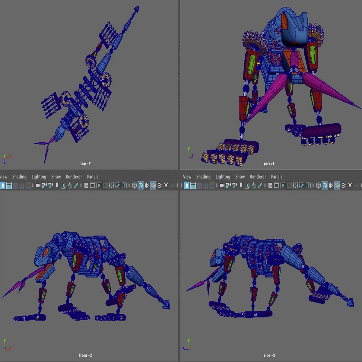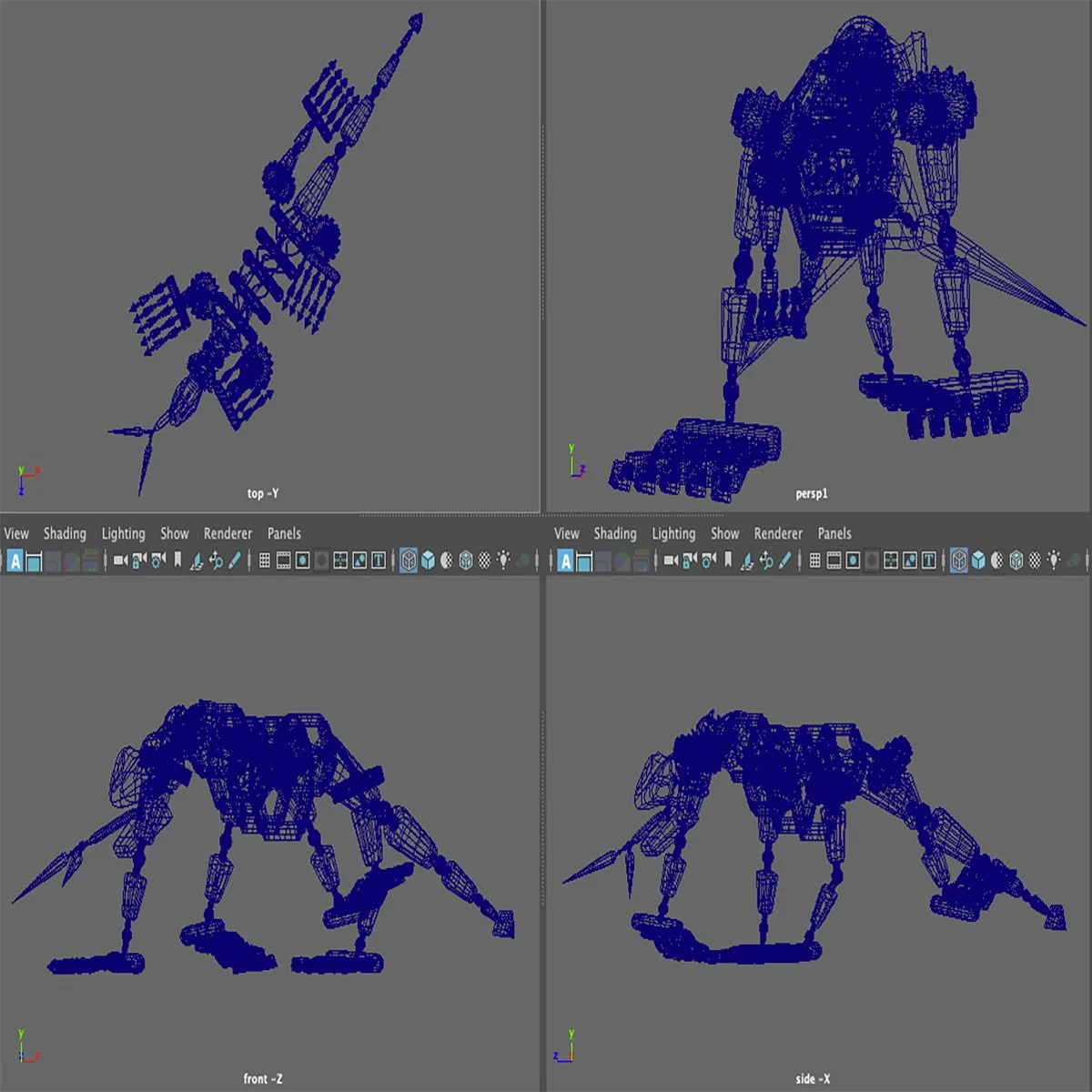 This overview demonstrates the geometry, textures, and 2D-to-3D implementation through a Model Video Preview, Base Model, Wireframe w/ Base Model, and Wireframe w/0 Base Model. It showcases the character’s progression from early concepts to fully developed assets, focusing on how textures and geometry come together in 3D. The wireframes emphasize the structure and flow, ensuring the design is optimized for animation and gameplay.